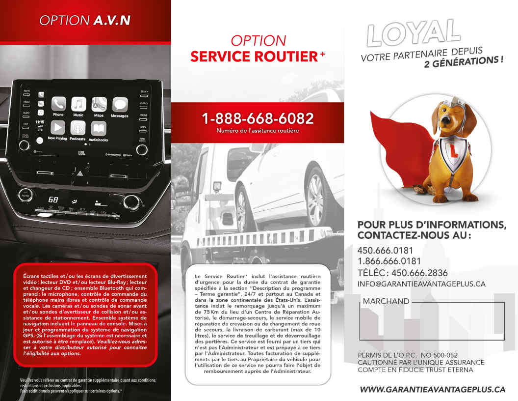 • Applicable dans tout garage, qui peut effectuer les réparations et les réclamations avec la garantie Avantage Plus, à sa discrétion
